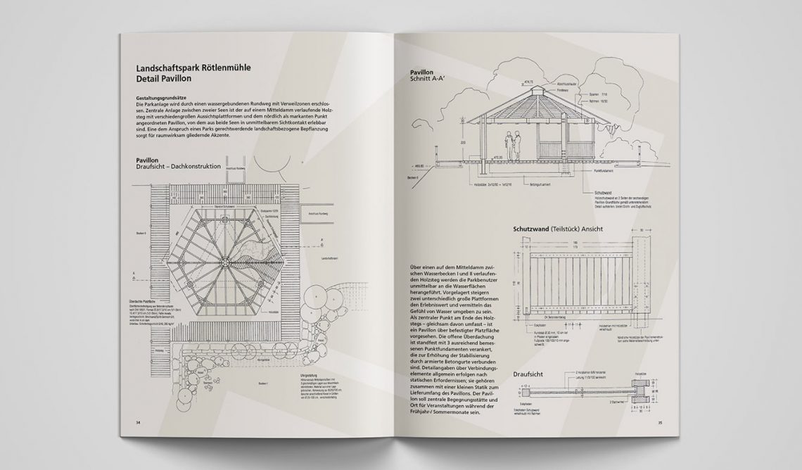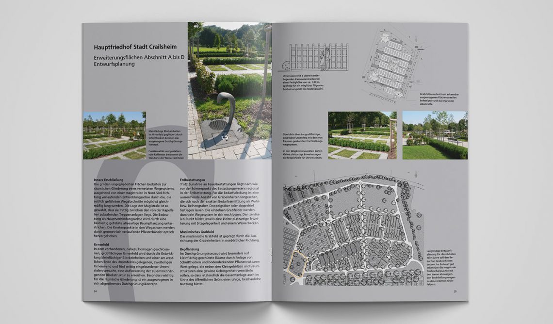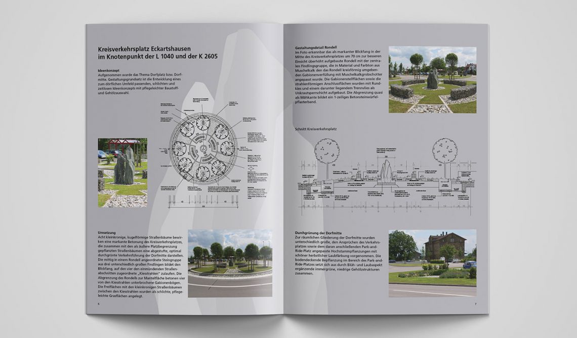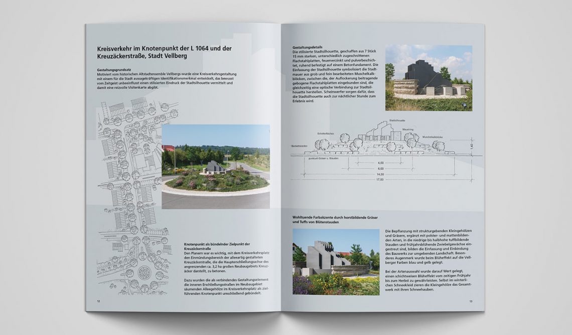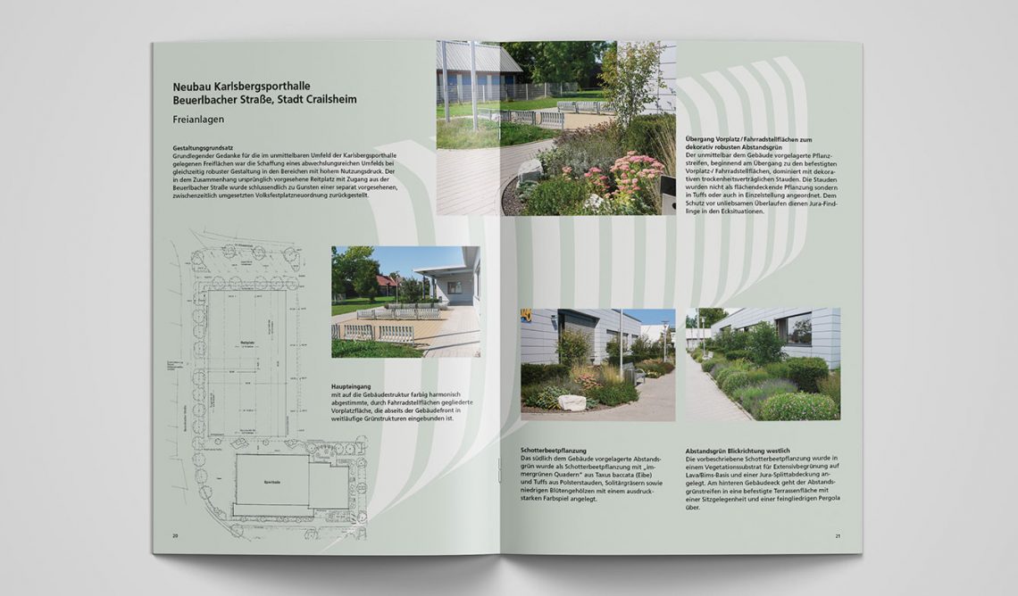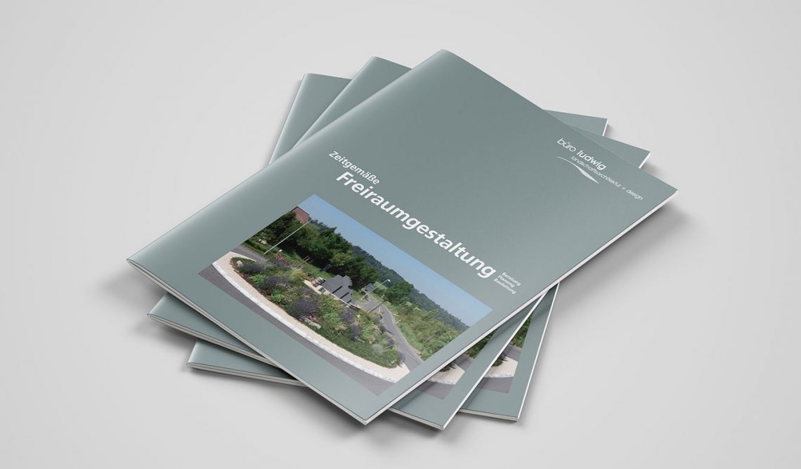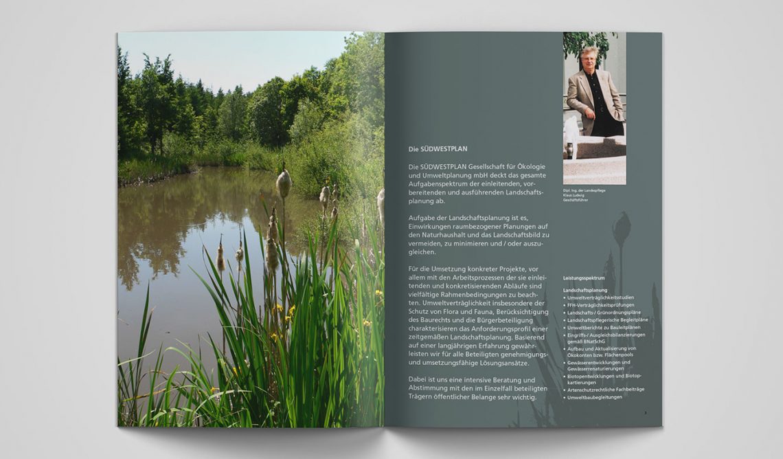 Unternehmensbroschüren mit Leistungsportfolio inklusive Sammelmappe für das Büro Ludwig Landschaftsarchitektur und die zweite Firma Südwestplan. Konzept, Illustrationen, Key-Visual, Plan-Überzeichnungen, Layout.