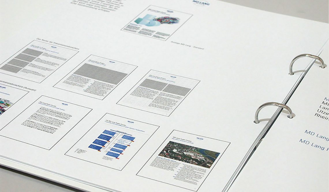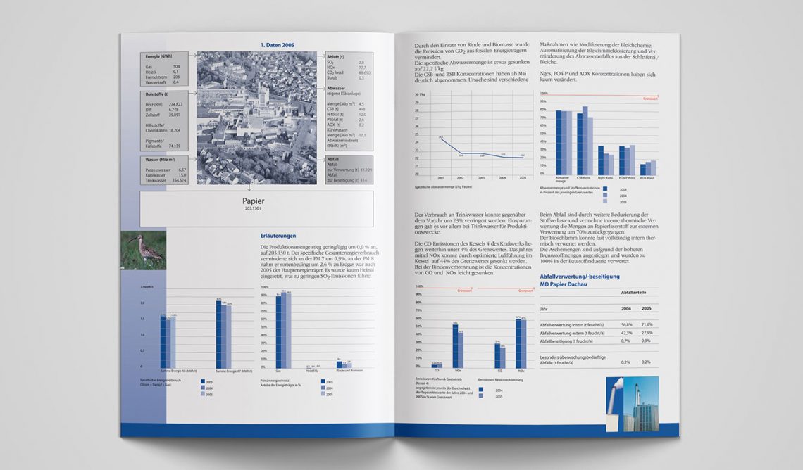 Gestaltung zahlreicher Produkte der Unternehmenskommunikation von insgesamt 7 Papierindustriewerken in Deutschland, Schweiz und USA. Darunter Broschüren, Plakate, Übersichtstafeln, Fahnen, Anzeigenkampagnen, Geschäftsdrucksachen und Etiketten. 1995 bis 2011